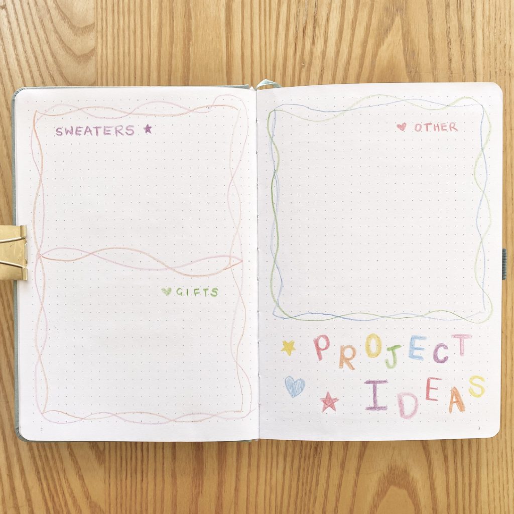 Next up, we have a Project Ideas spread, which I’ve split into three sections: Sweaters, Gifts & Other. If this were me, I’d have this spread split up into an extensive, comprehensive list of categories (you guys have seen my wish list spreads, right?!), but the more minimal, open vibe with fewer categories is what works best for my mum!