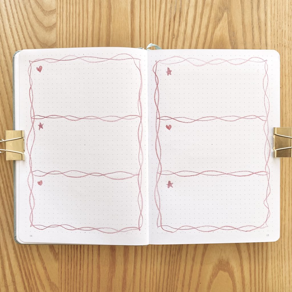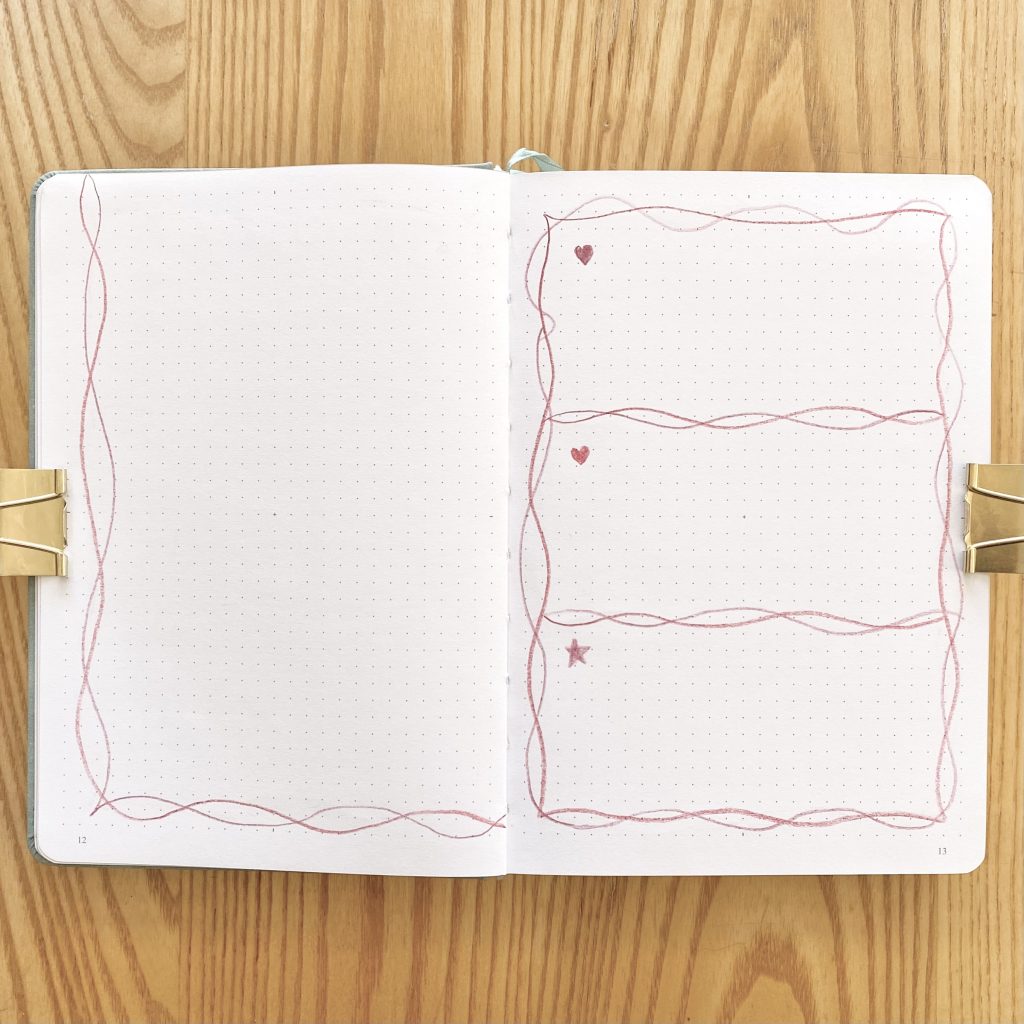 I’ve used these two-line wavy borders all throughout the setup (always using two different colours/shades for each border). Not only does this look pretty fun and add a little extra decoration, it’s actually pretty quick to set up, because you don’t have to get a ruler out!