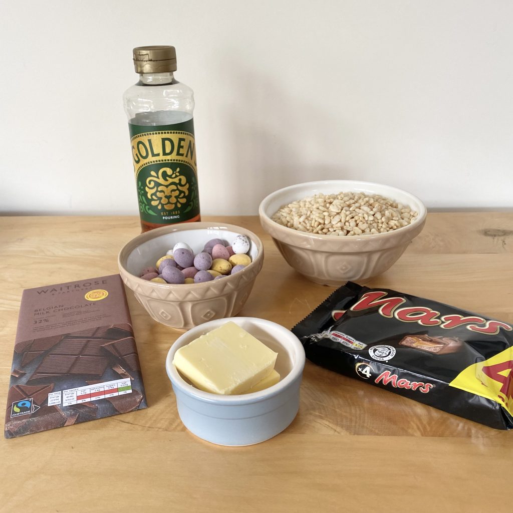 To make these Mars Bar Rice Crispy Nests, you’ll need the following ingredients: