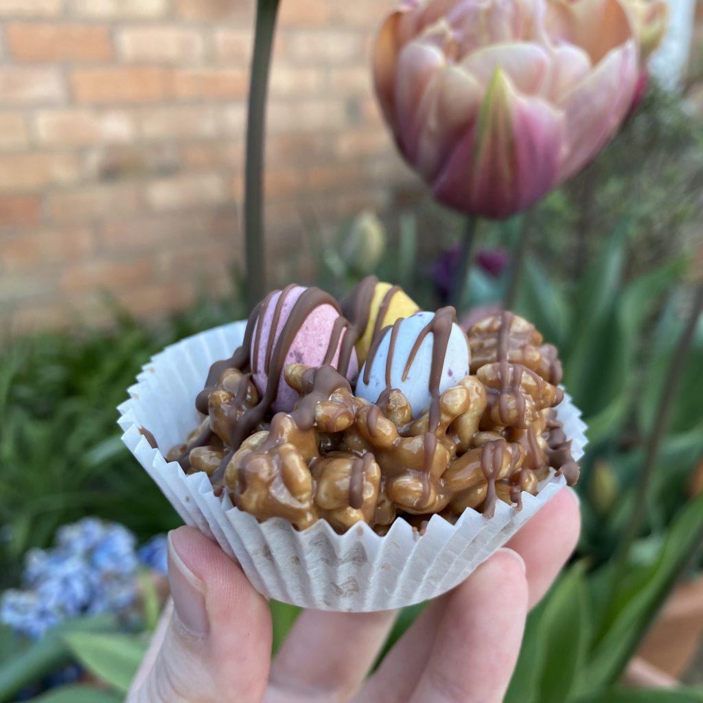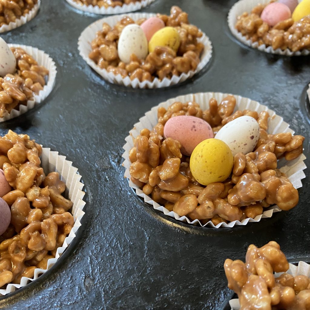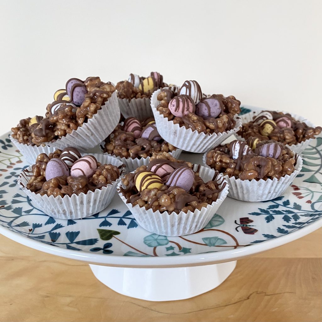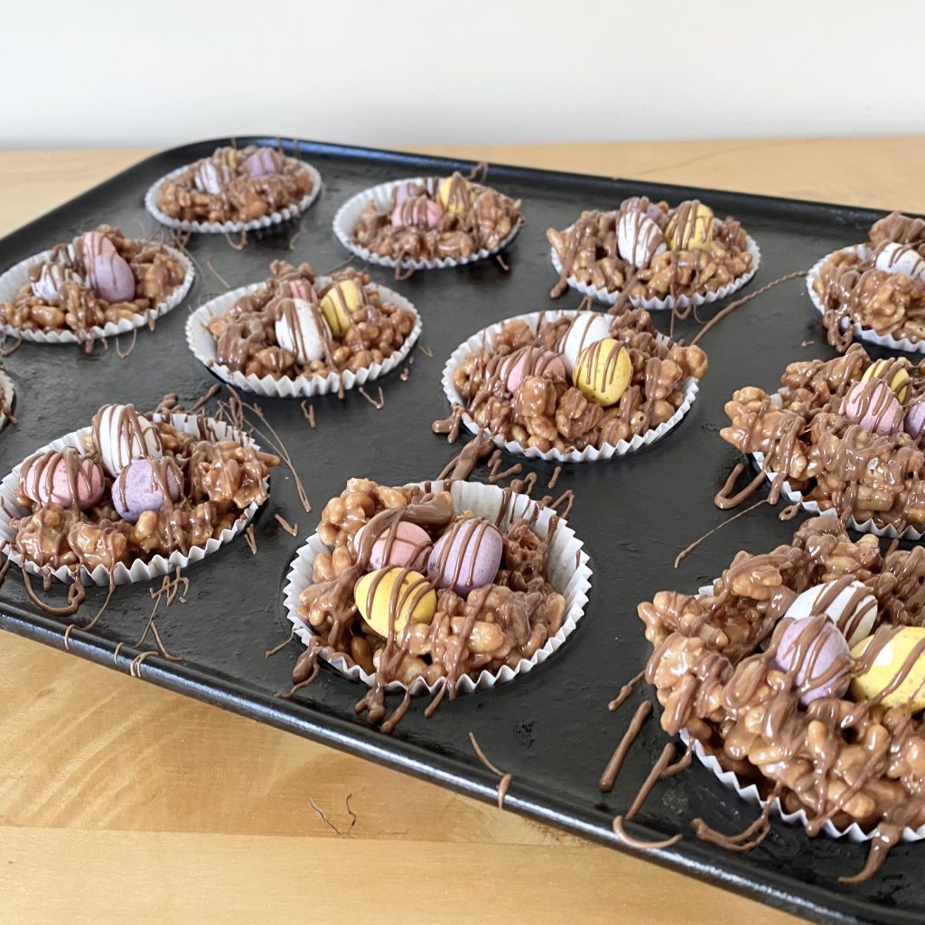 These go by so many names: rice crispies, rice bubbles, rice pops… the list goes on! Basically, if you’ve got puffed rice cereal, you’re good to go. Theoretically, you should be able to make these nests with other types of cereal (shredded wheat and cornflakes are common alternatives for standard chocolate nests), but I’ve only ever tried this particular recipe with rice crispies.