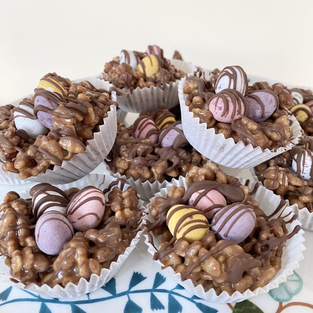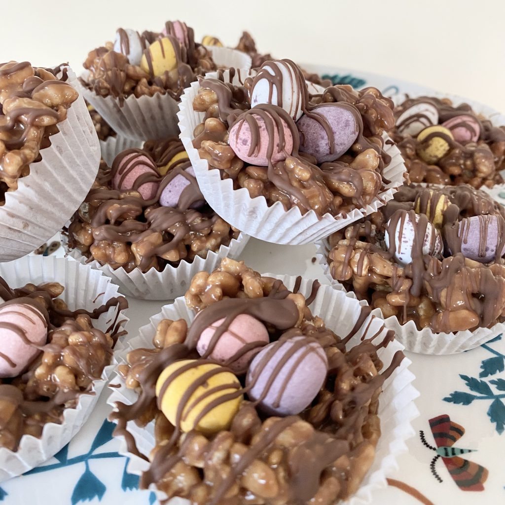 Today’s recipe is a combination of two of my all-time favourite treats: Easter Nests & Mars Bar Rice Crispy Cakes. These are my… Mars Bar Rice Crispy Nests!
