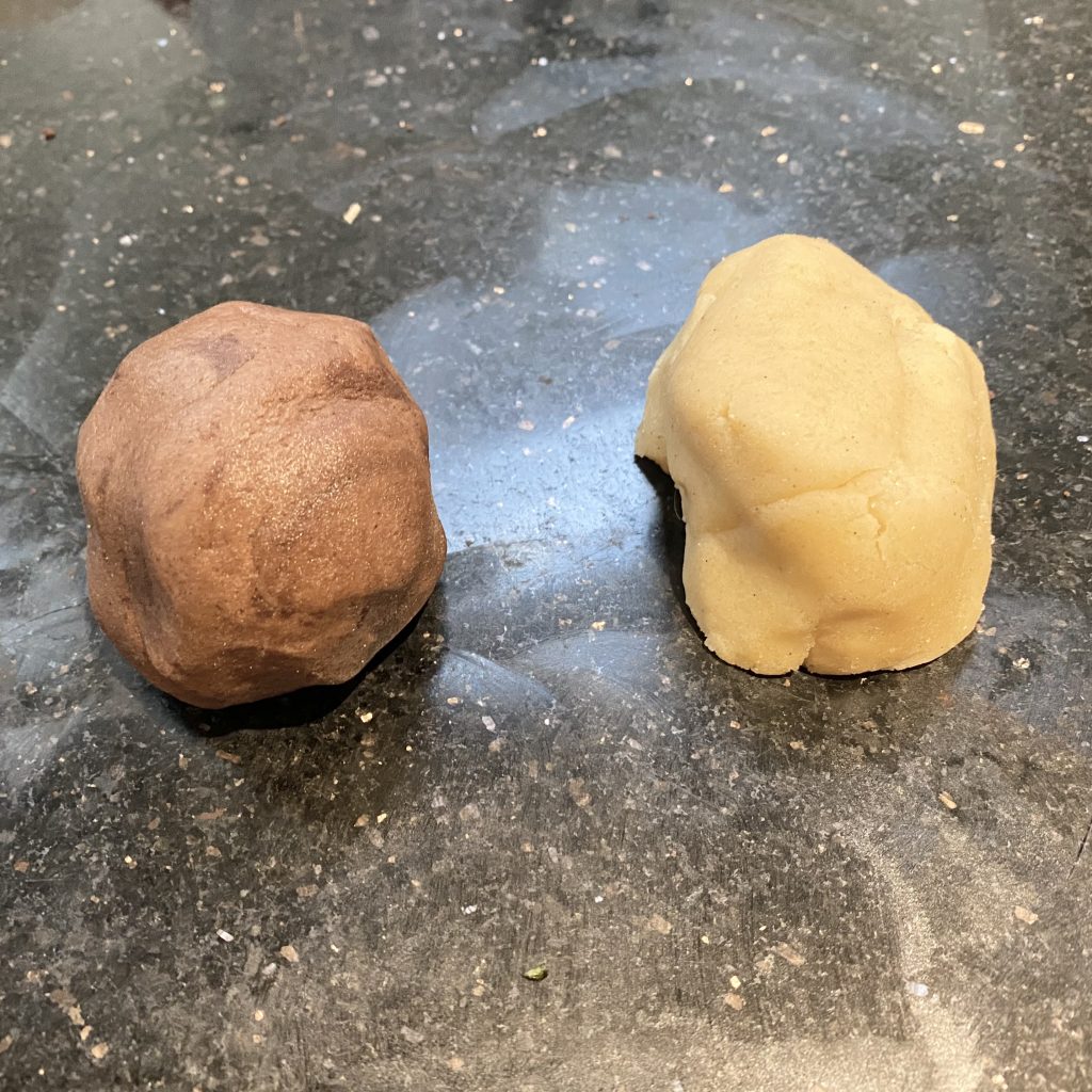 Once you have two balls of dough: one chocolate and one vanilla, you’re ready to shape the dough into the classic checkerboard design!