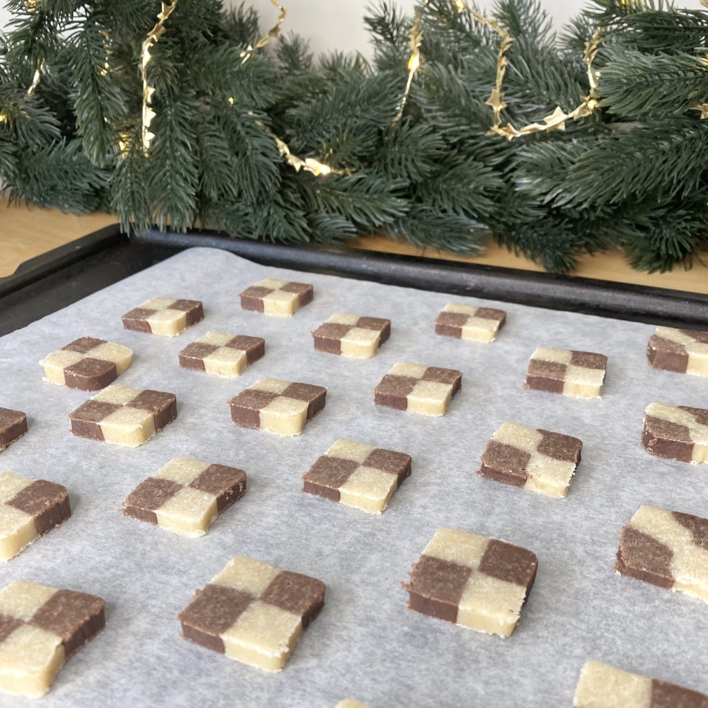 This time, weโre heading back to Sweden! I’ve already made one bake from Sweden (jordgubbstรฅrta, a light and airy cake filled with pastry cream and strawberries), but I love making festive cookies from around the world this time of year, so I decided to try out these schackrutor (‘chess squares’) too.